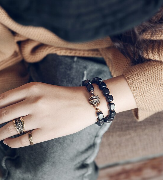 Bakır Ve Küp Abanoz Boncuk Bileklik
