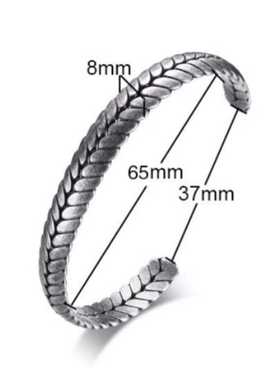Bilekliğin en geniş yeri 65mm,dar kısım ise 37 mm,genişlik 8mm dir.Açık olması farklı ölçülerdeki bileklerin manşet bölümünde kullanım kolaylığı sağlıyor.