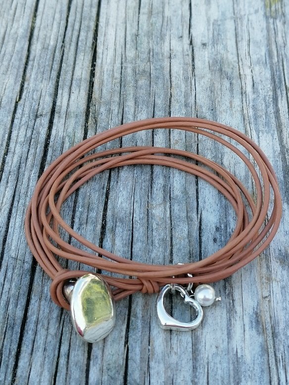 Kahverengi Gerçek Deri Ve Gümüş Bileklik