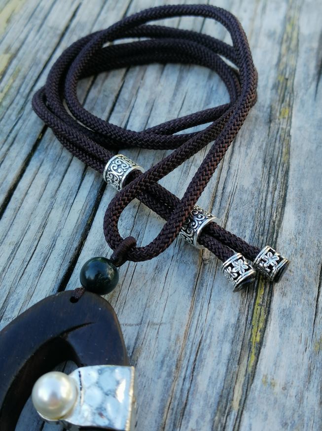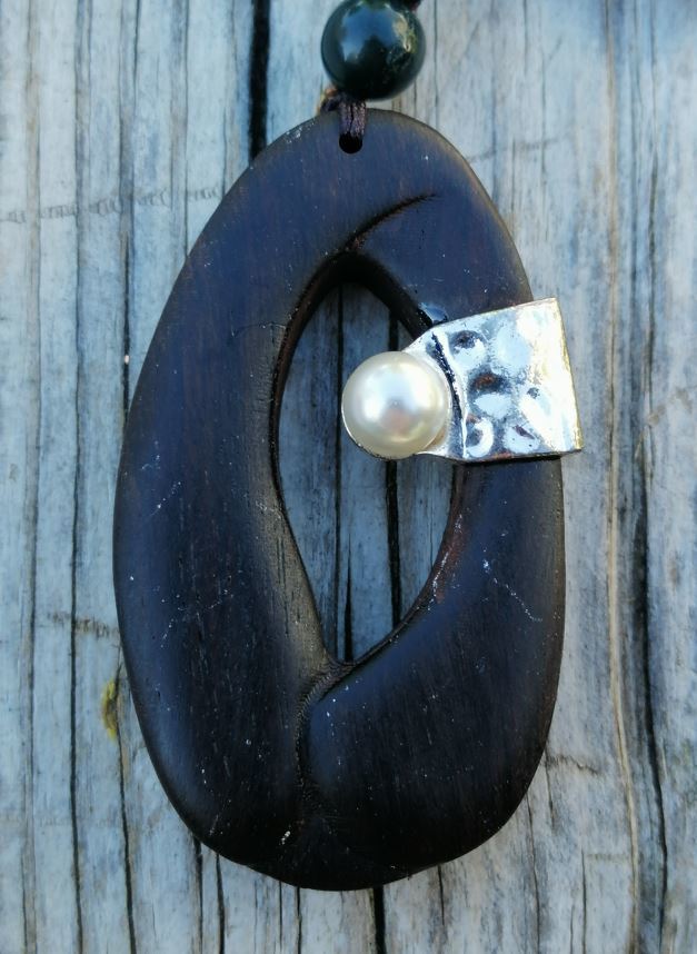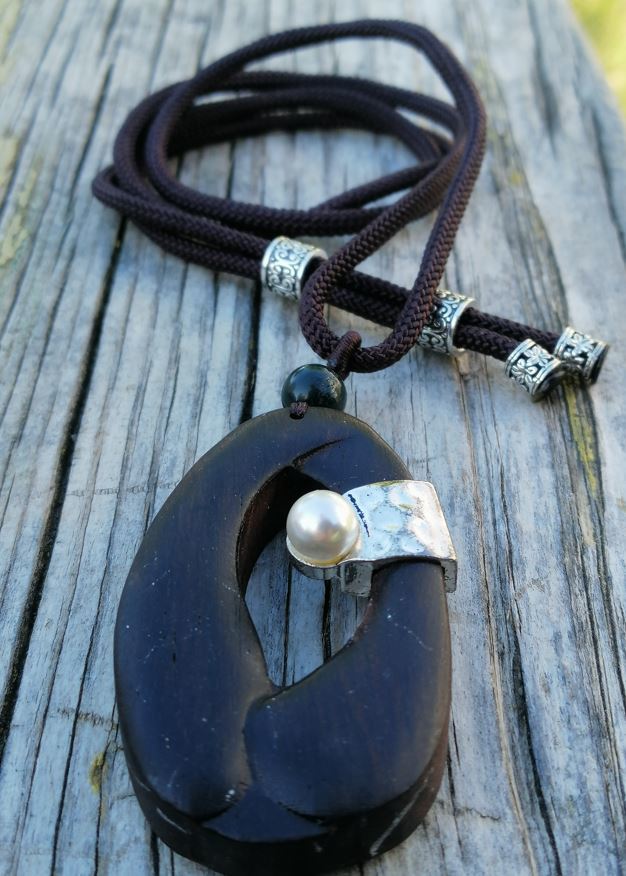 Kışın kazaklarla rahatlıkla ve zevkle kullanılabilecek abanozdan yapılmış uzun etnik kolye.