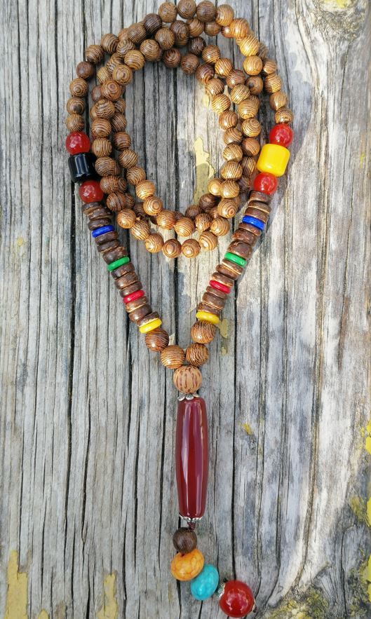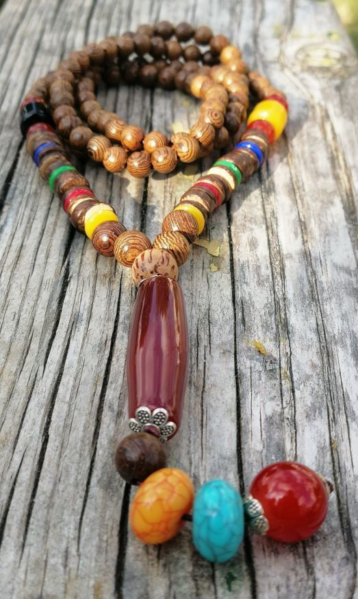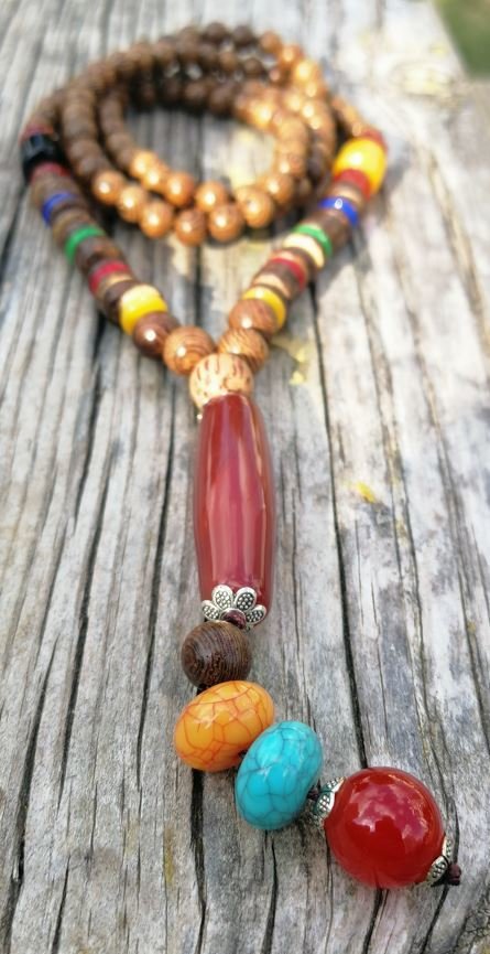 Kışın kazaklarla rahatlıkla ve zevkle kullanılabilecek Lotus Öküz boynuzu ve ahşaptan yapılmış uzun kolye.
