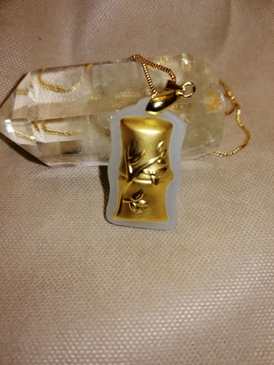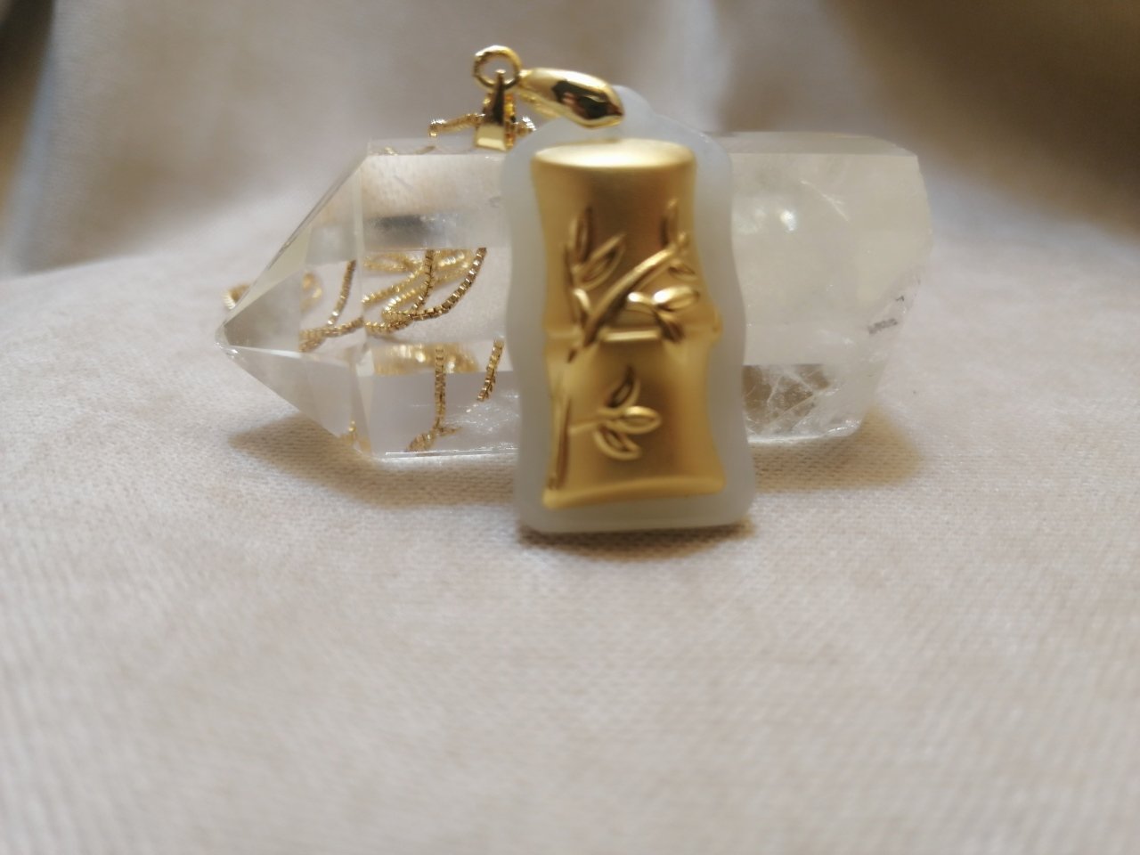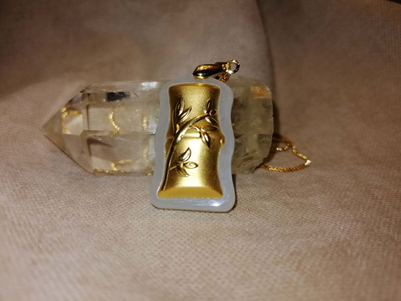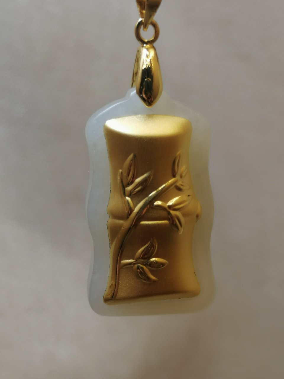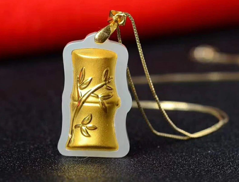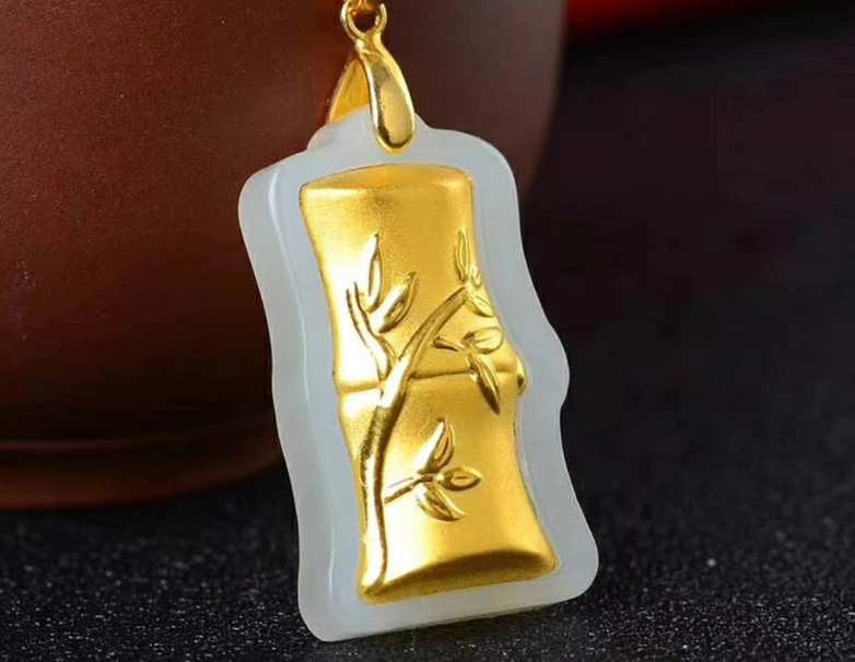 24K Altın Kaplama Bambu Formlu Beyaz Yeşim Taşı Kolye