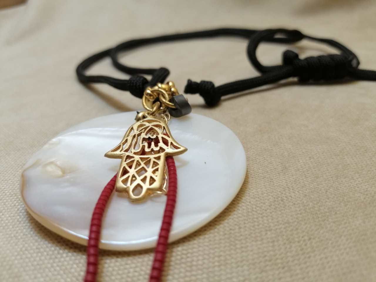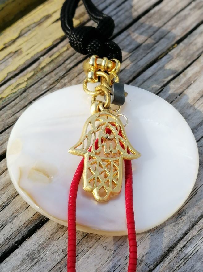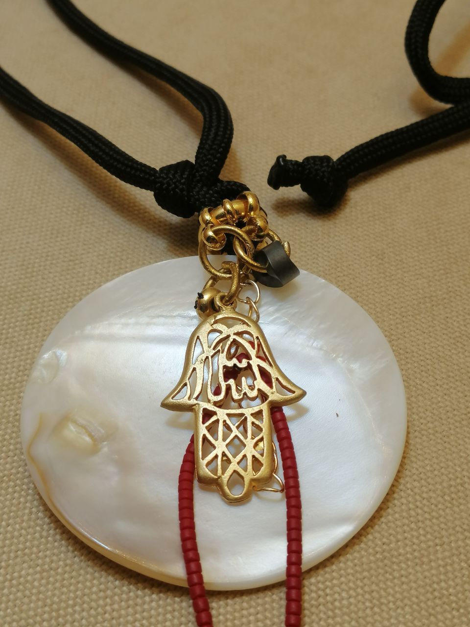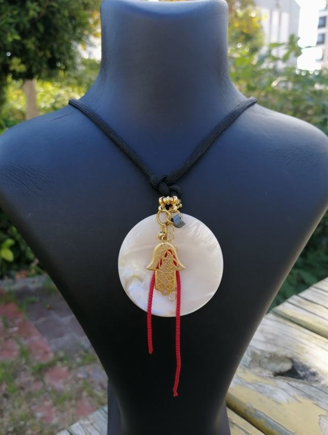 Ntk-84 Tasarım Doğal Sedef Ve Kararmayan Mat Altın Hamsa Kolye