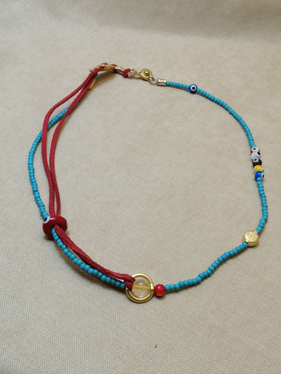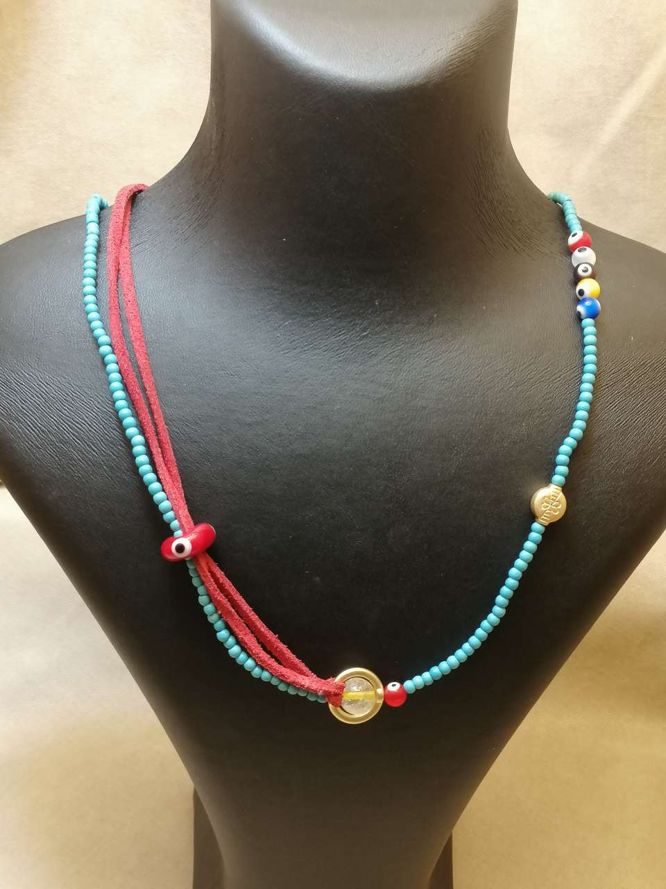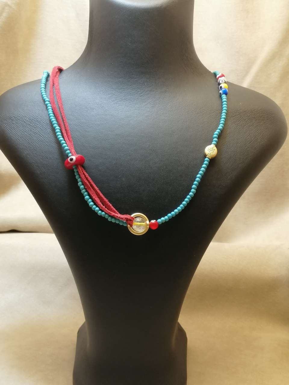 Ntk-109 Tasarım Süet Detaylı Firuze Kolye