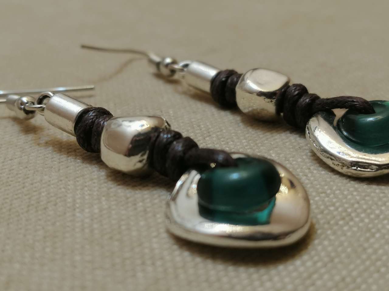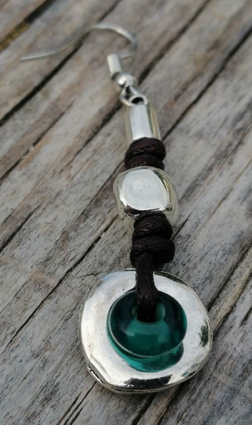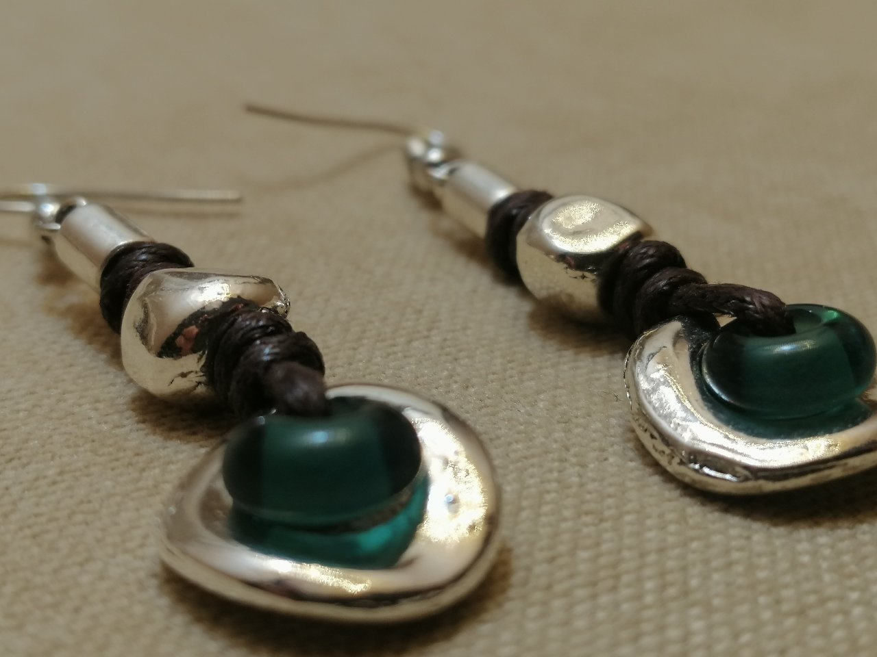 Gerçek deri, doğal yeşil taş ve gümüş kullanılmıştır..