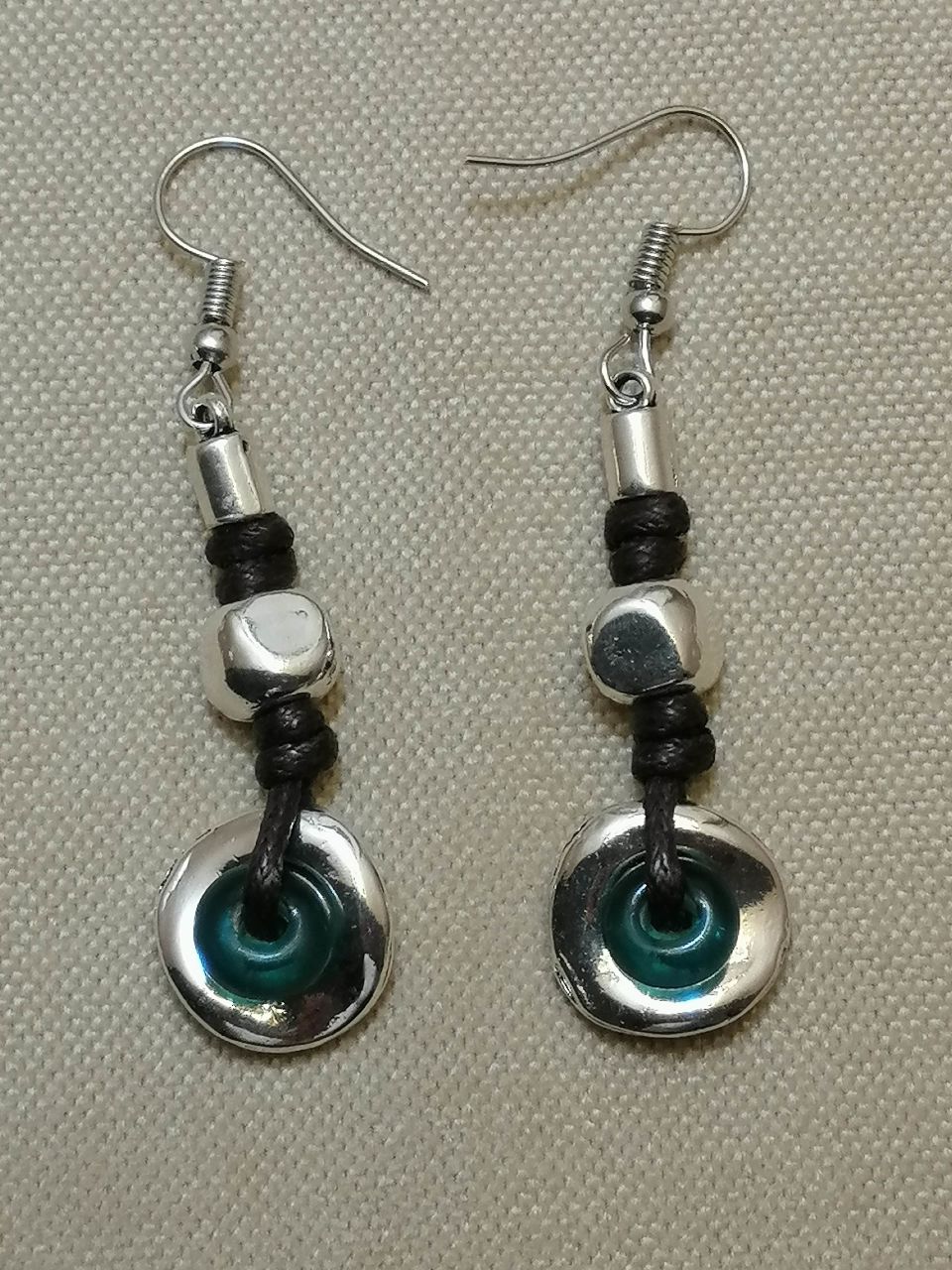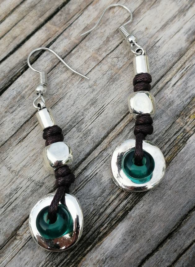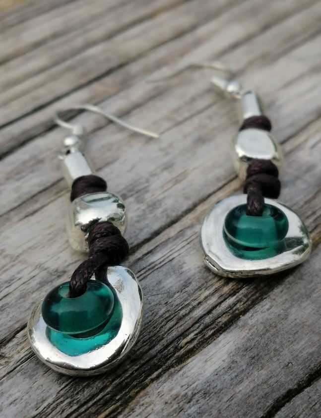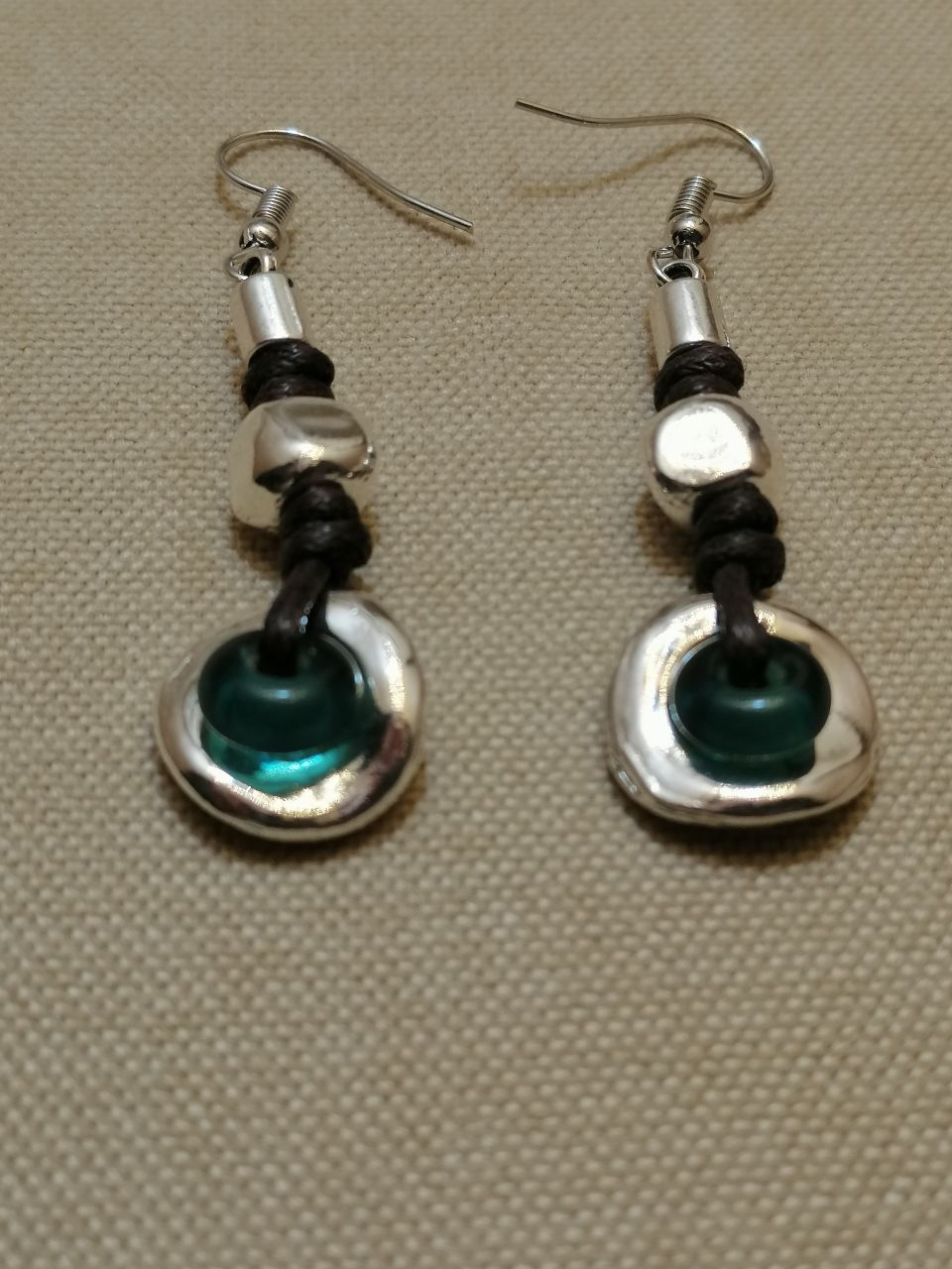 Gerçek deri, doğal yeşil taş ve gümüş kullanılmıştır..