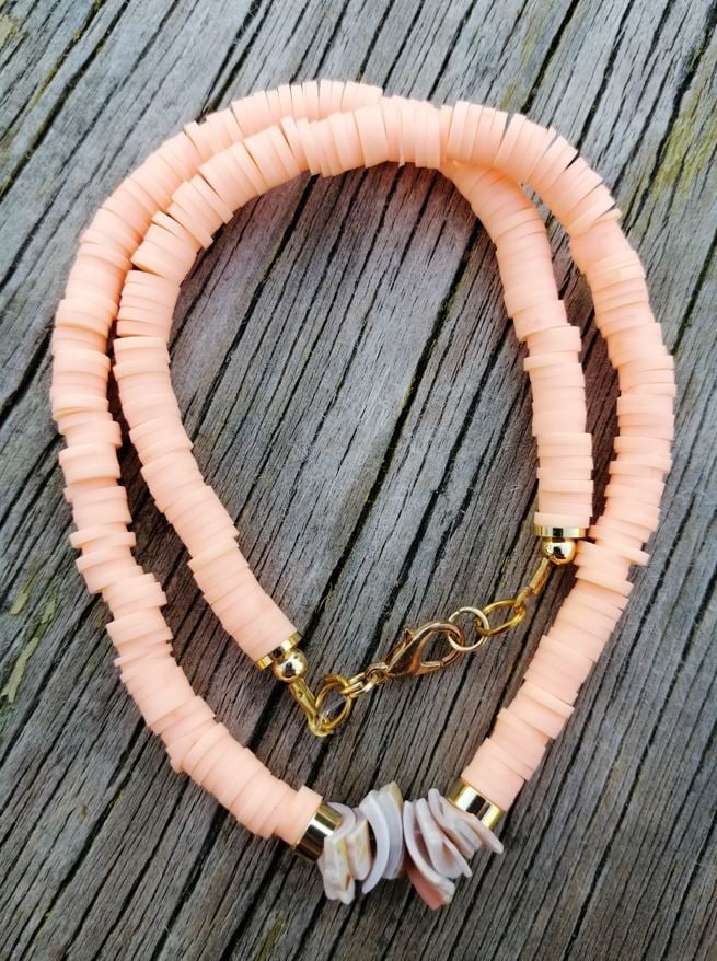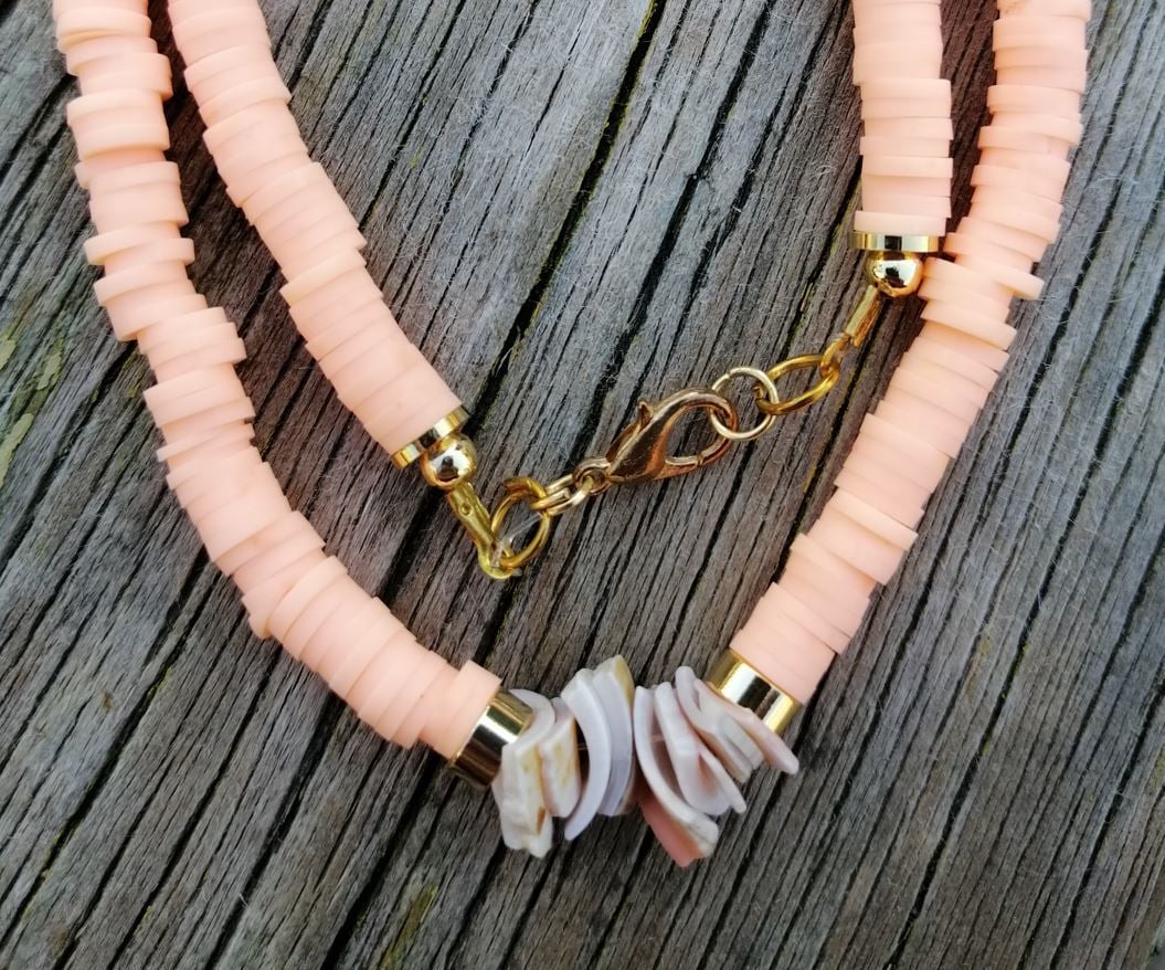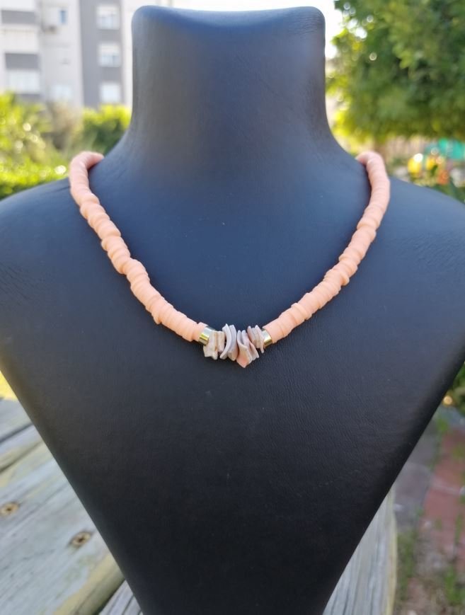 Ntfk-39 Tasarım Doğal Deniz Kabuklu Fimo Kolye Karamel