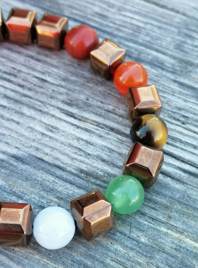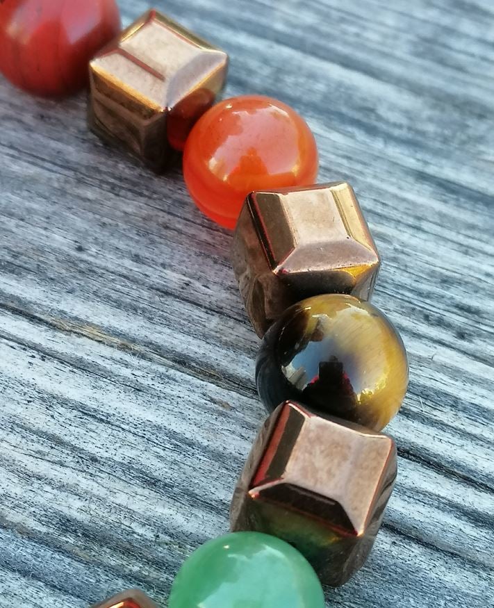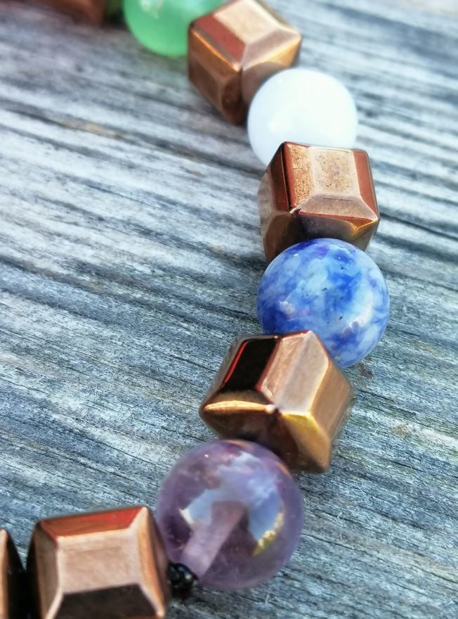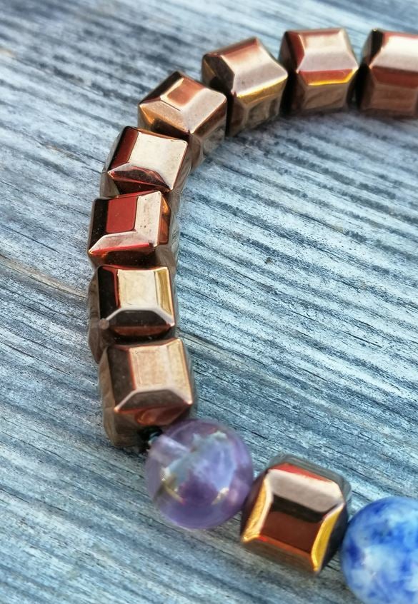 Özel tasarım Kübik hematitili çakra bilekliği. Çakraların aktif ve etkin biçimde çalışarak yaşamın denge içinde geçmesi ve sağlıklı algılayış için eş enerjilerden tasarlanır. Taktamamla yorumu ile hoş bir çakra bilekliği.