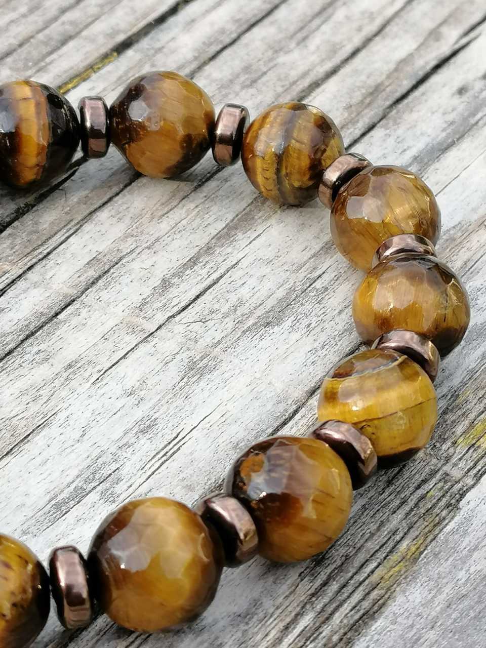 El yapımı altın kaplangözü ve Hematit bileklik Vintage bileklik.