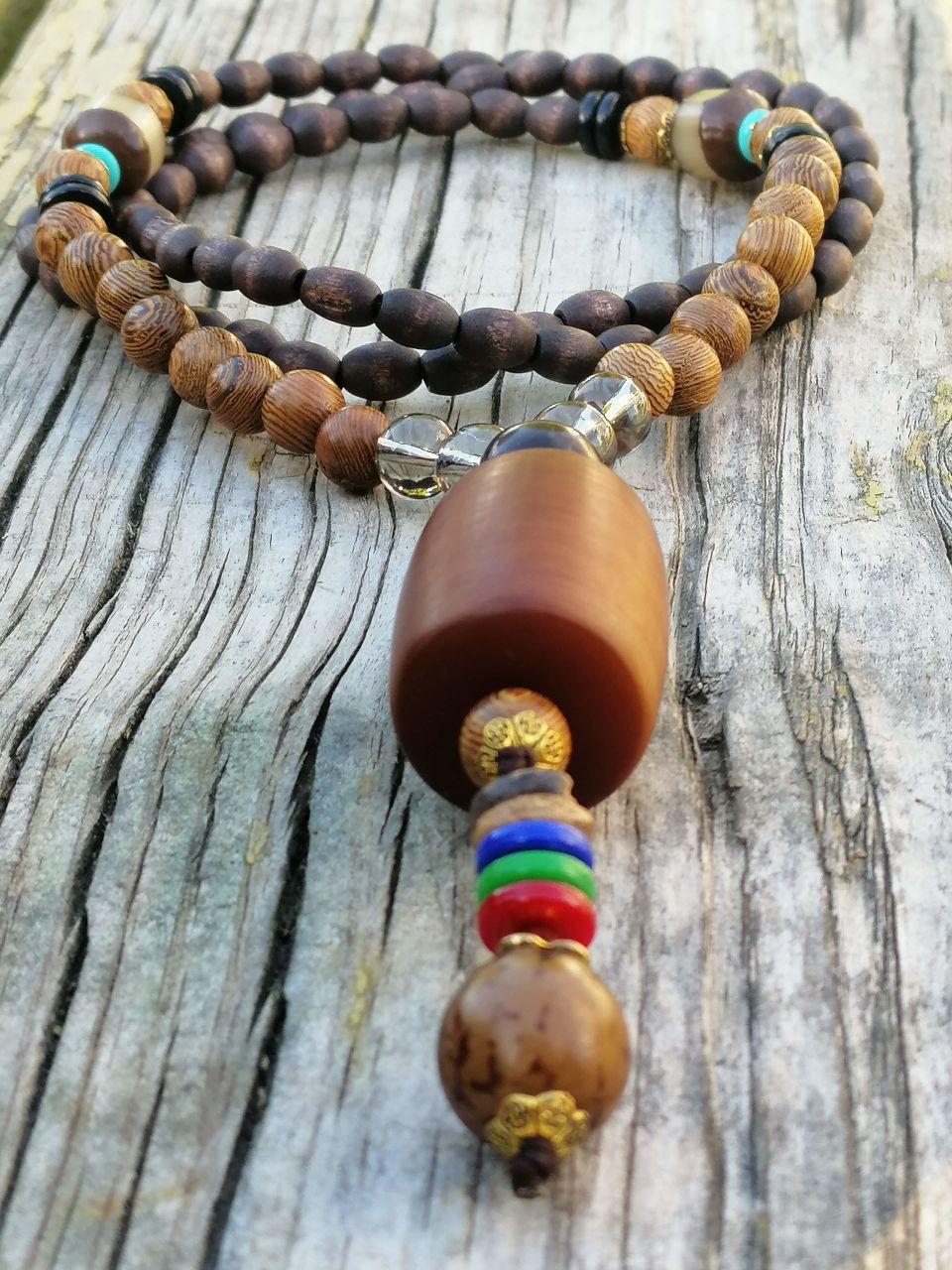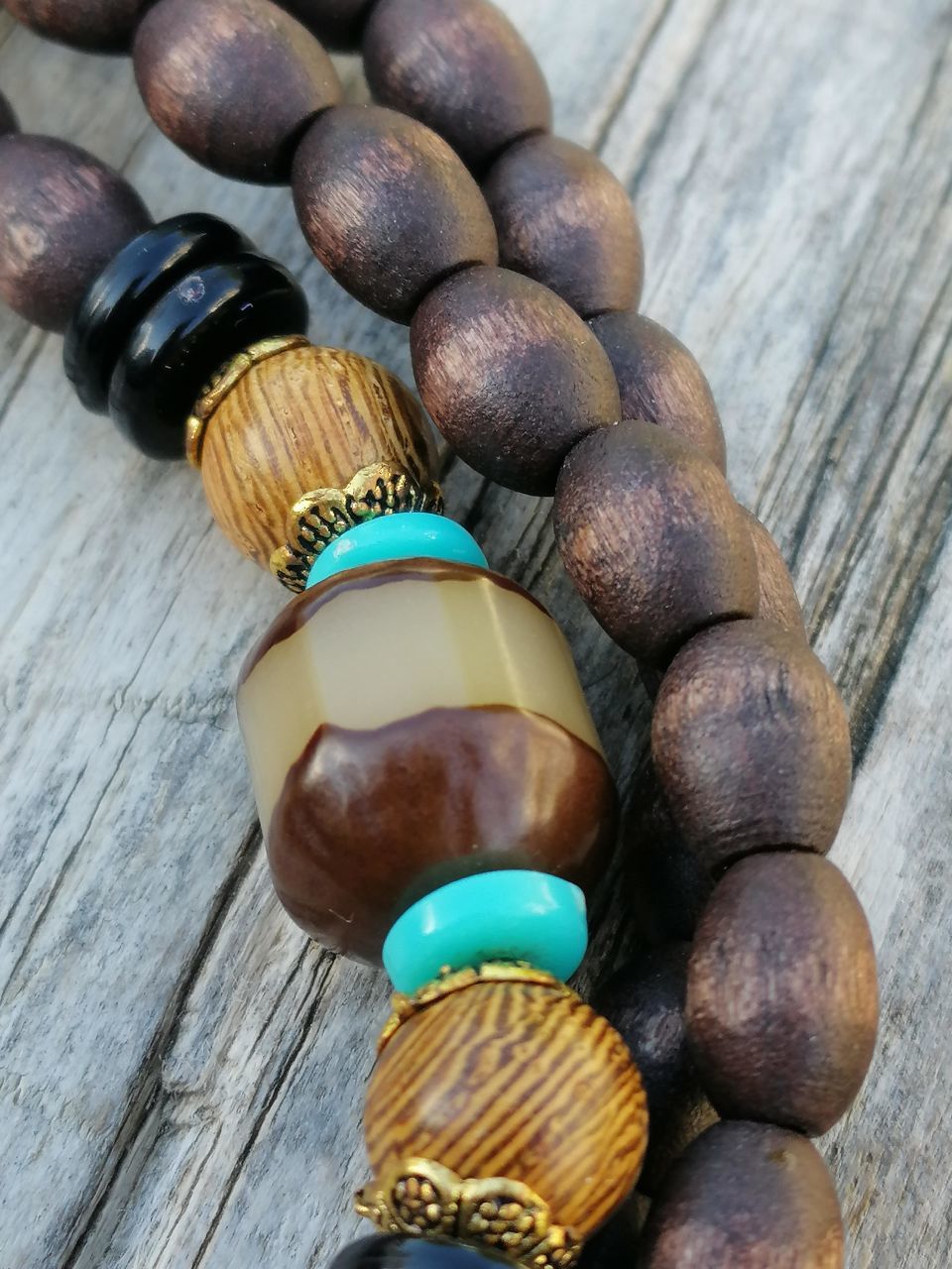 Kışın kazaklarla rahatlıkla ve zevkle kullanılabilecek ahşap boncuk uzun mala kolye.