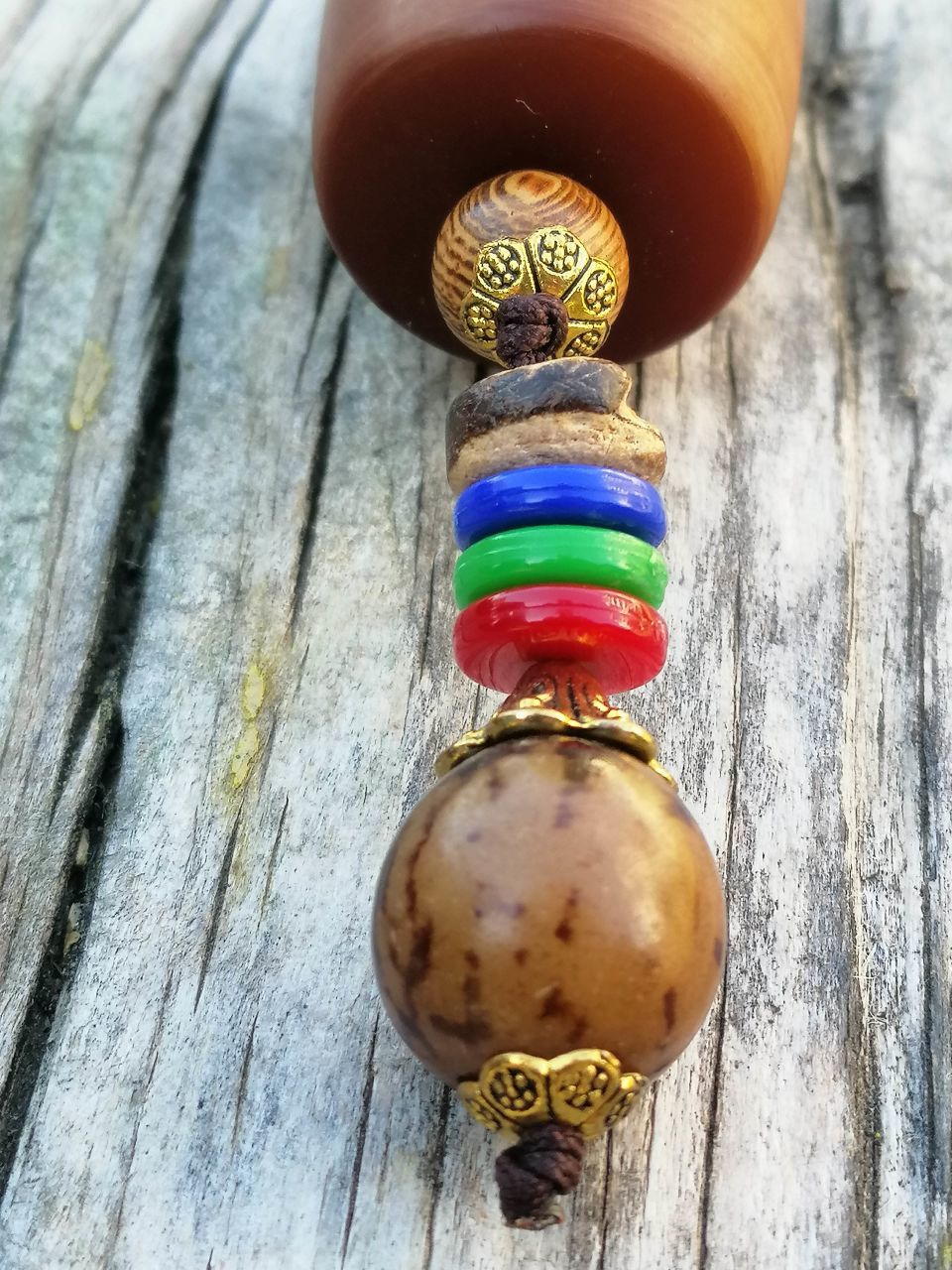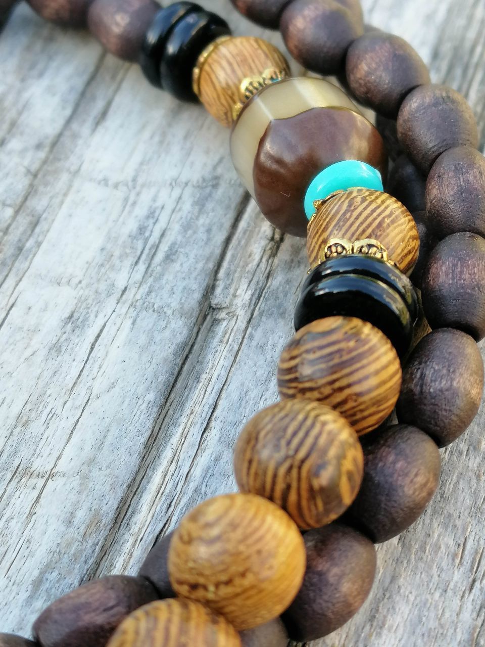 Doğal Taş Süslemeli Ahşap Uzun Mala Kolye