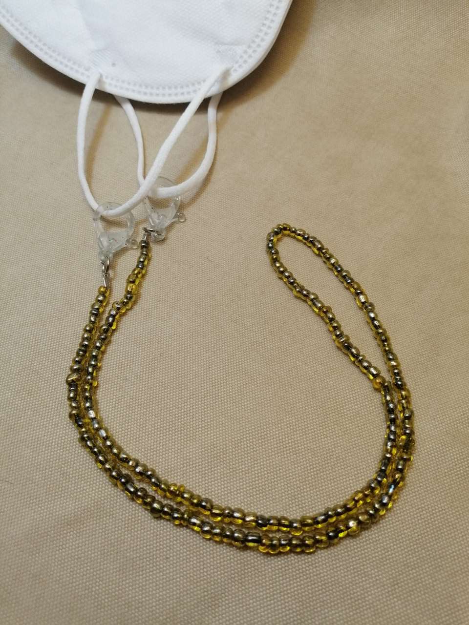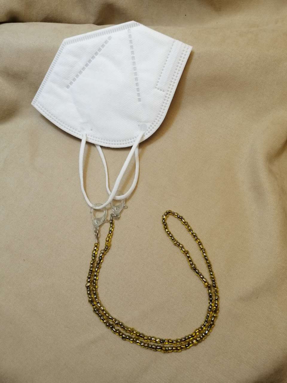 Yanında 2 adet gözlük aparatı ile birlikte gönderiyoruz.İhtiyacınıza göre gözlğk veya maske ipi olarak kullanabilirsiniz.