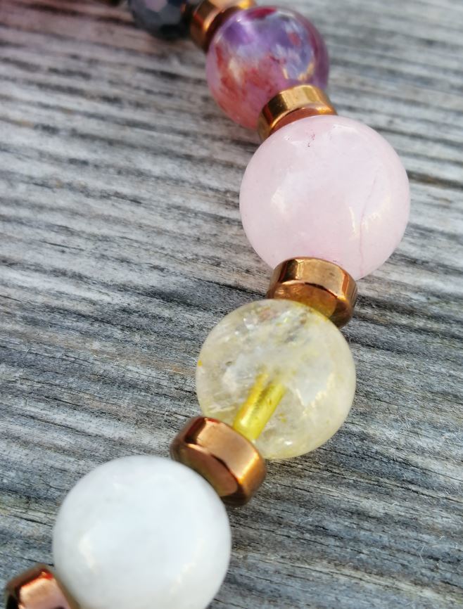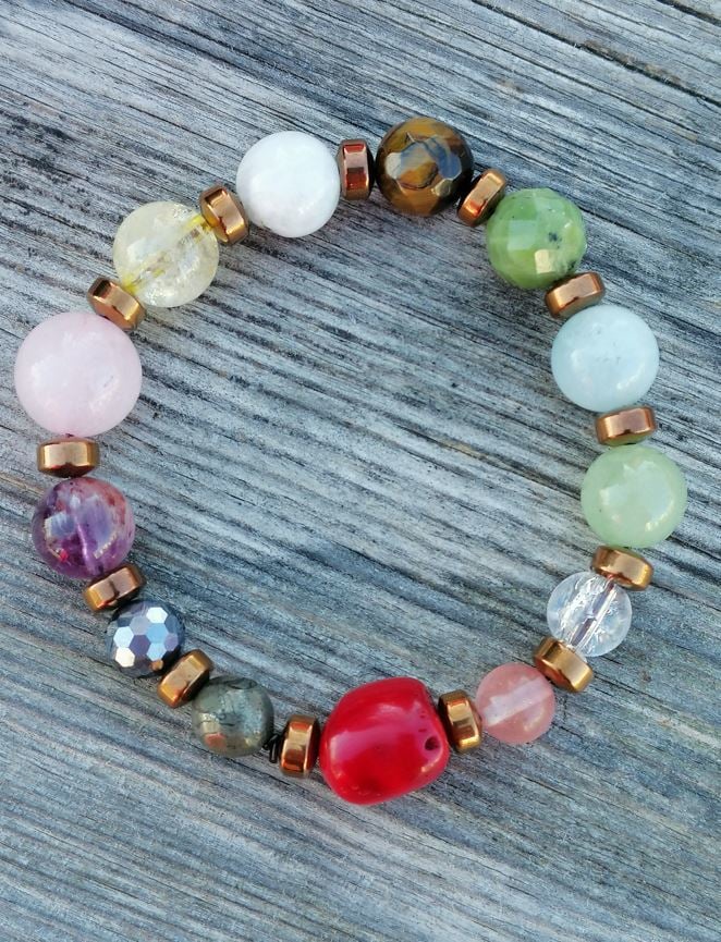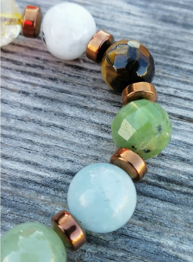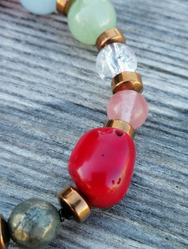 El yapımı Mercan, Prenhit, Aytaşı, Aquamarin, Pembe kuvars, Sitrin, Terahertz, Pirit, Gül Kuvars, Necef, Kanada Yeşimi, Aventurin, Ametrin, Kaplan Gözü ve Hematit bileklik Vintage bileklik.