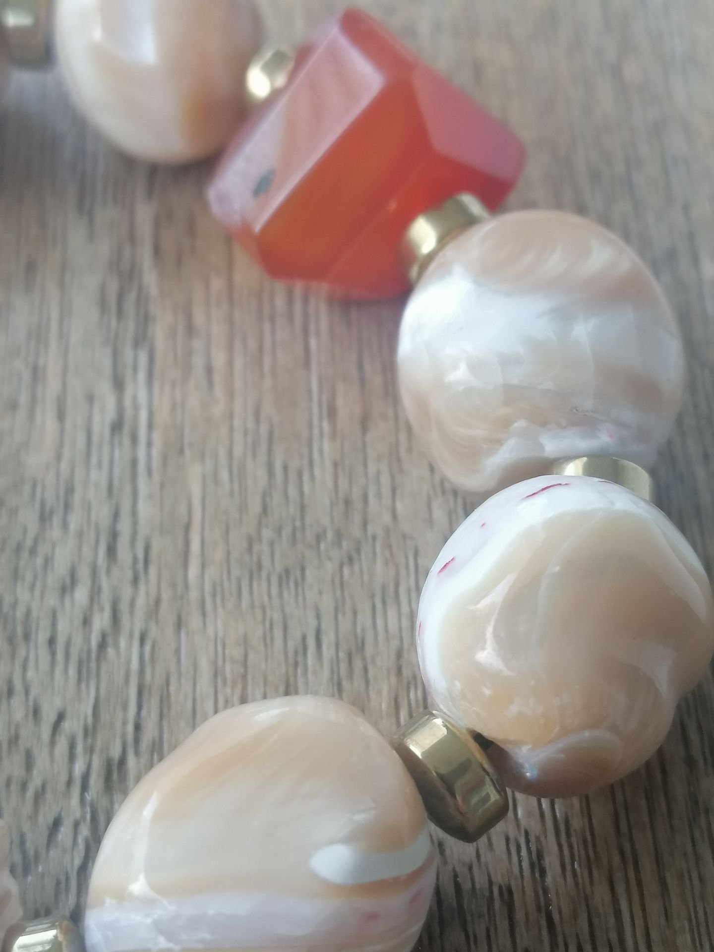Doğal malzemesinin ve el yapımı sürecin belirsizliği nedeniyle, her bir boncuk boyutu, rengi ve dokusu biraz farklıdır.