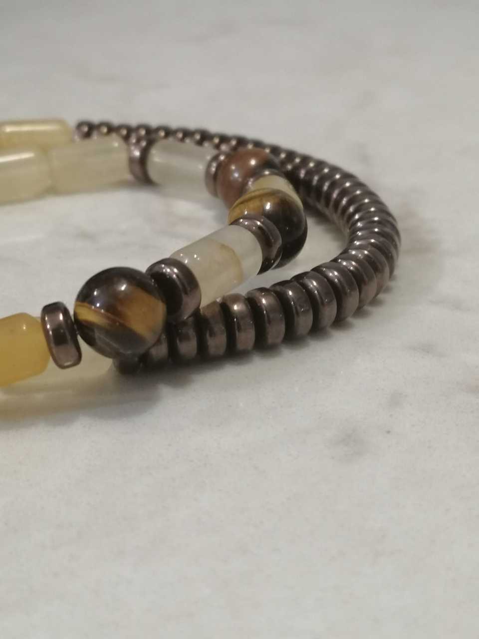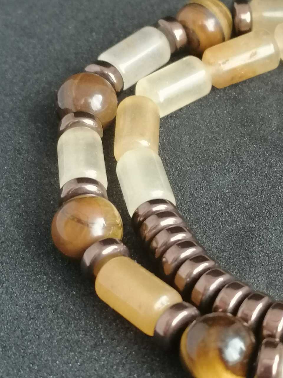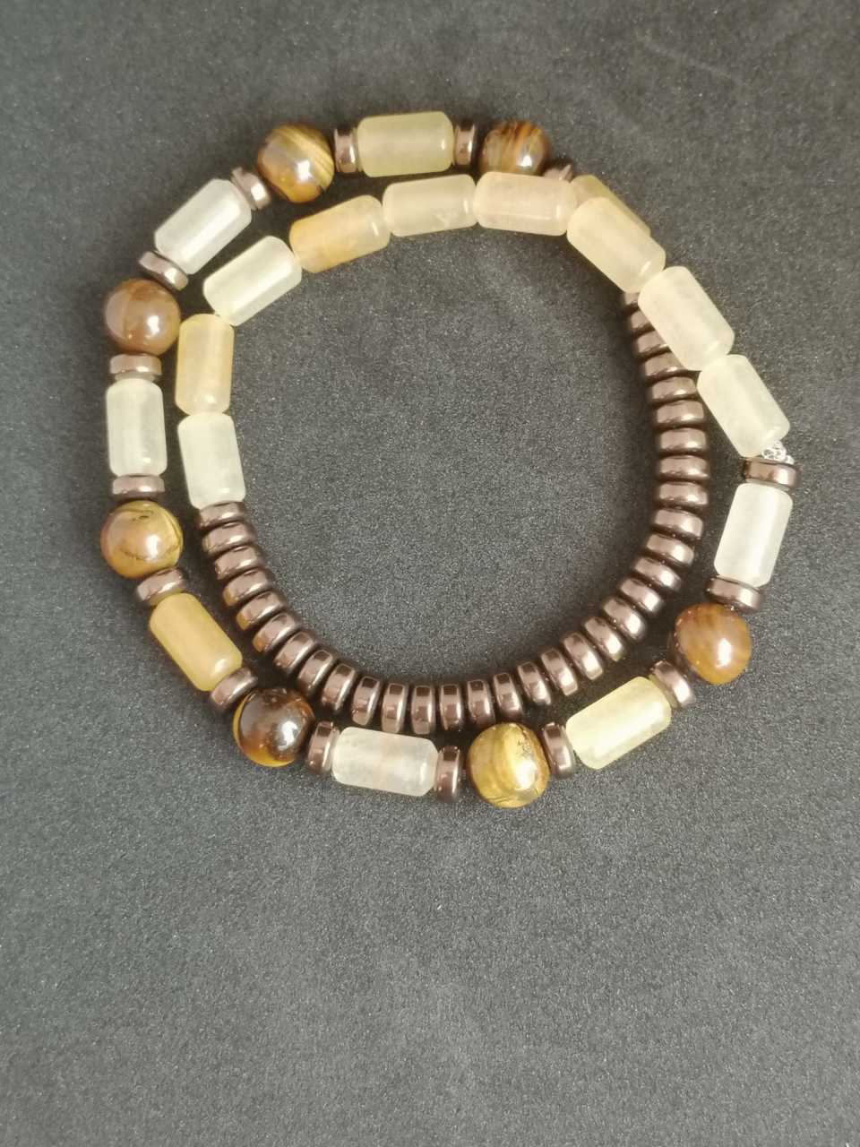 Benzersiz malzeme ve vintage moda bir arada Sitrin, hematit ve Kaplan Gözü bilekliği sizin için ideal bir aksesuar yapar.