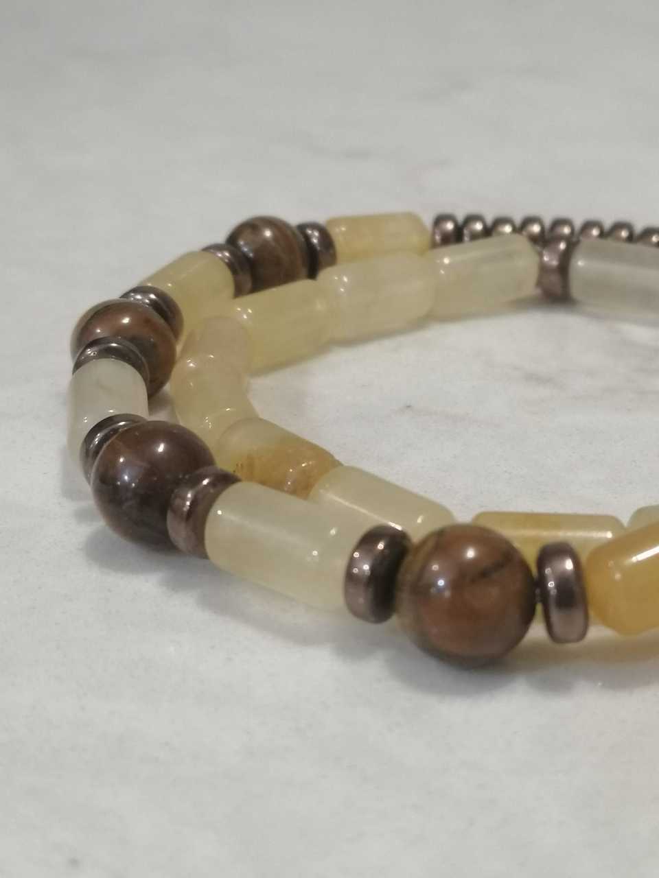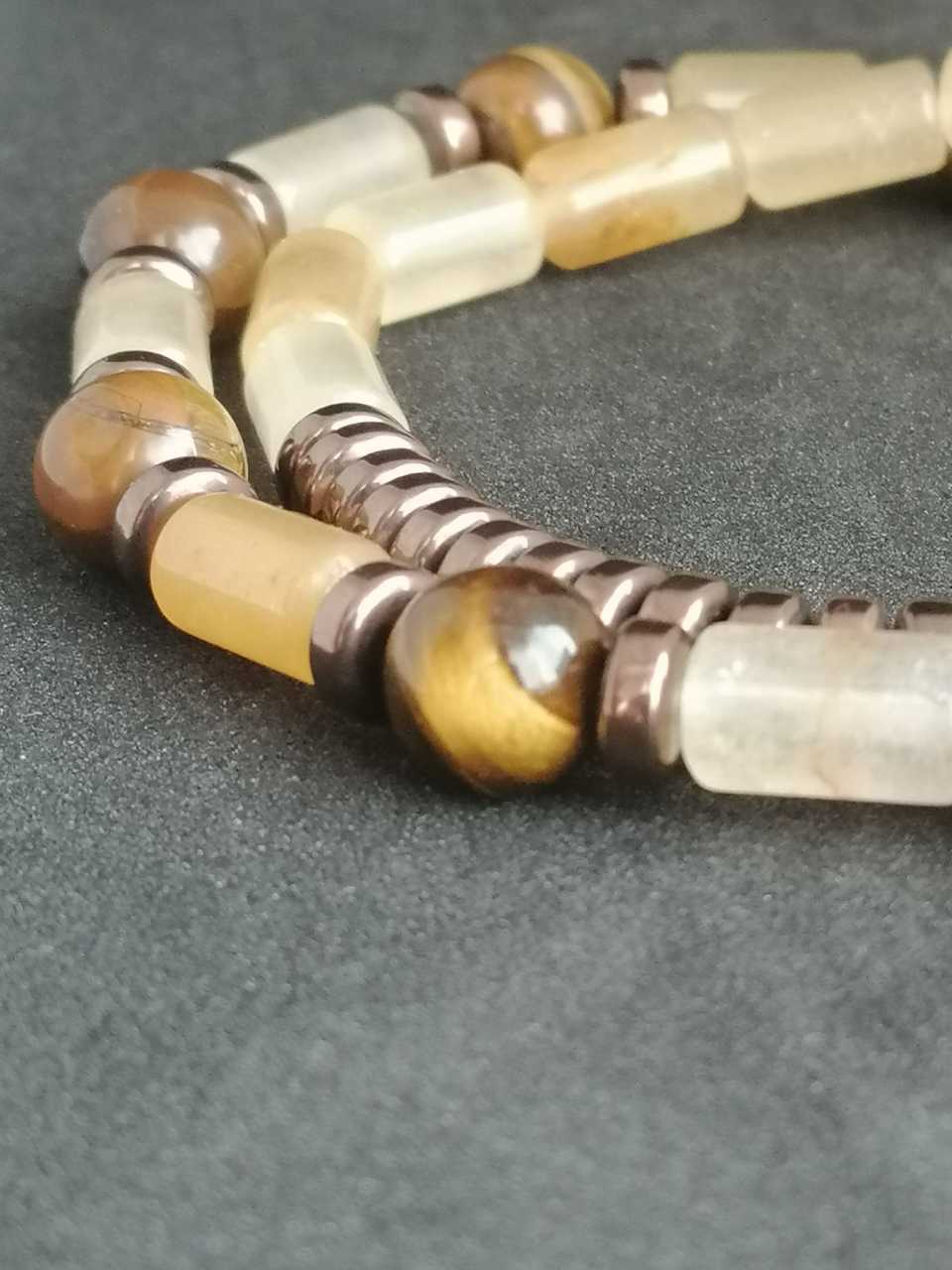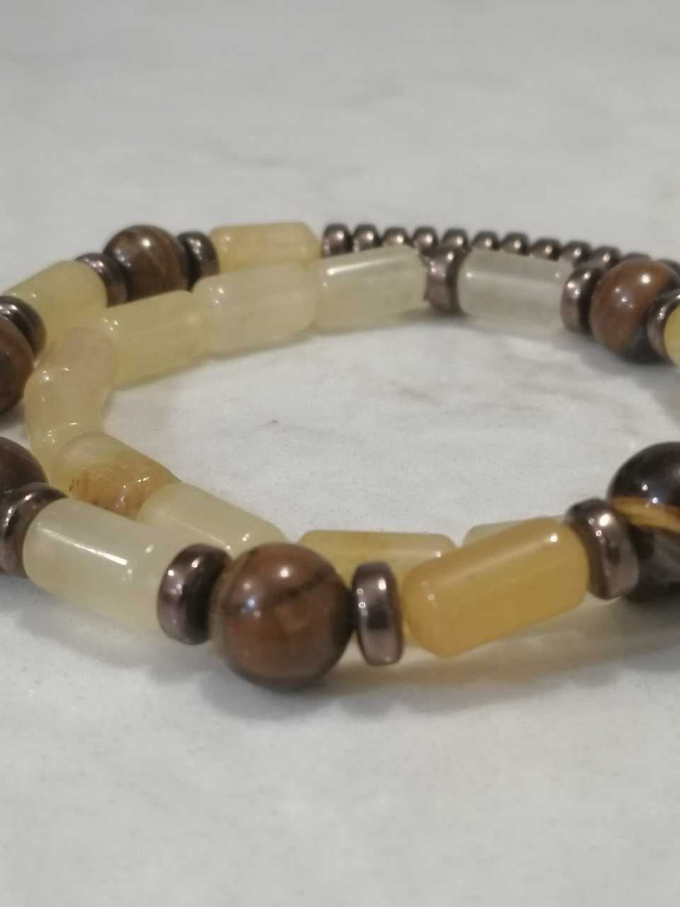 Benzersiz malzeme ve vintage moda bir arada Sitrin, hematit ve Kaplan Gözü bilekliği sizin için ideal bir aksesuar yapar.