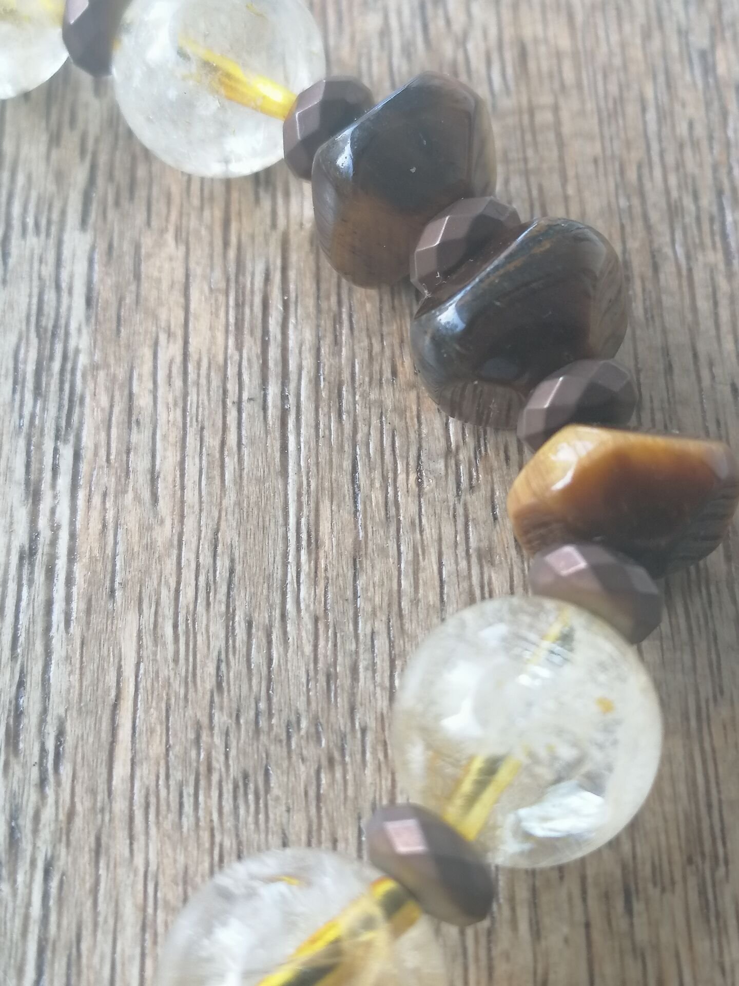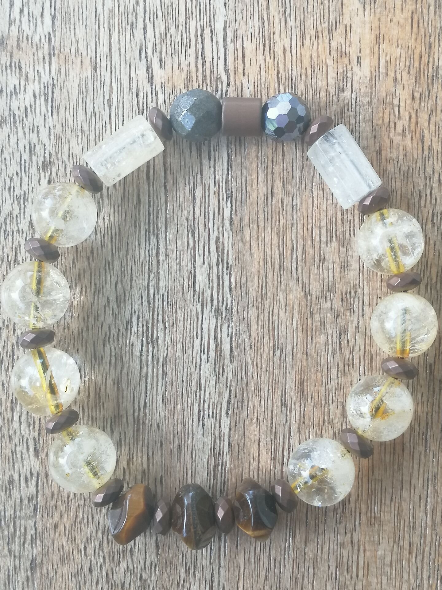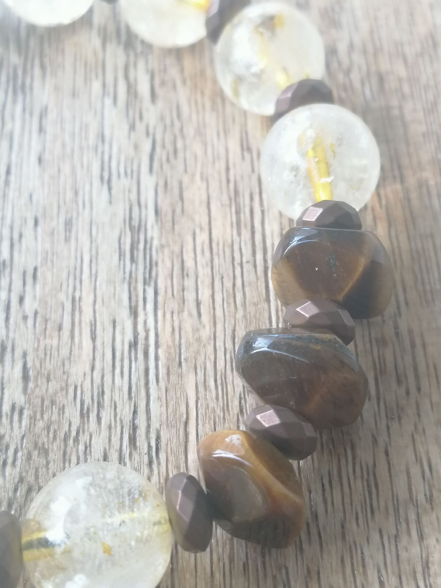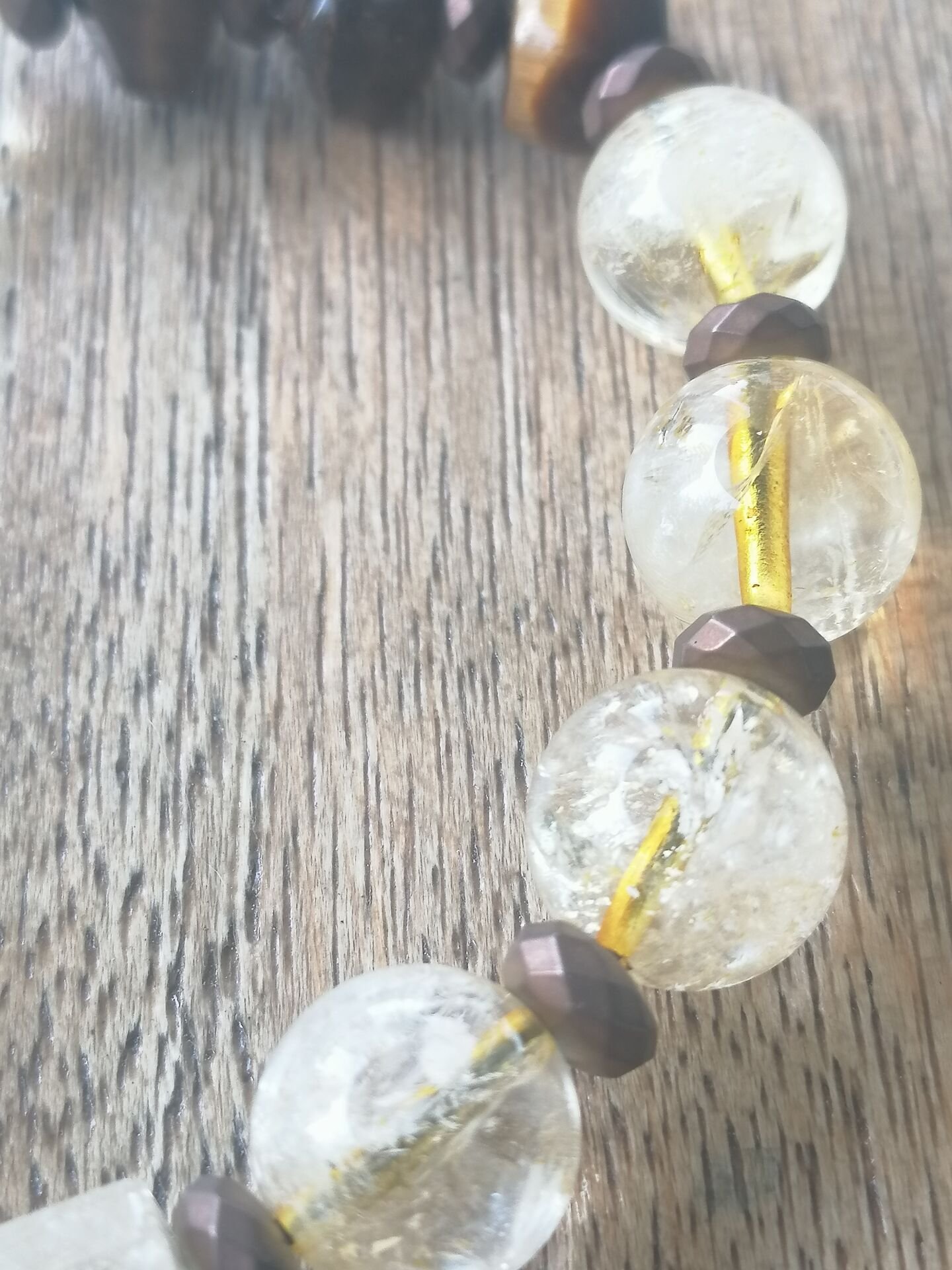 El yapımı, özel tasarım Sitrin, Kaplan Gözü ve hematitin güçleri birleştirilerek güçlü ve şık bir bileklik tasarladık. Para ve Bolluk Bereket Bilekliği.