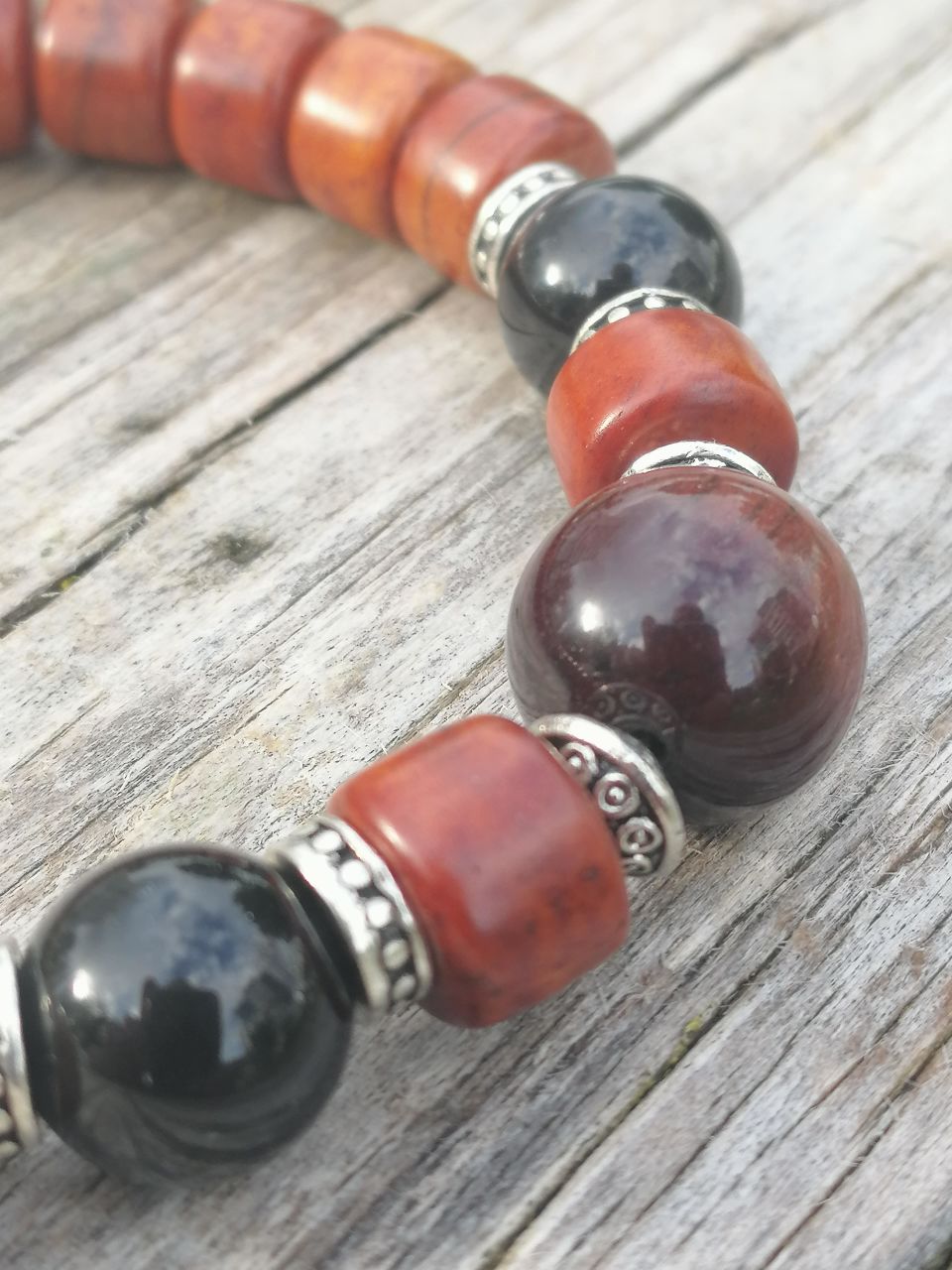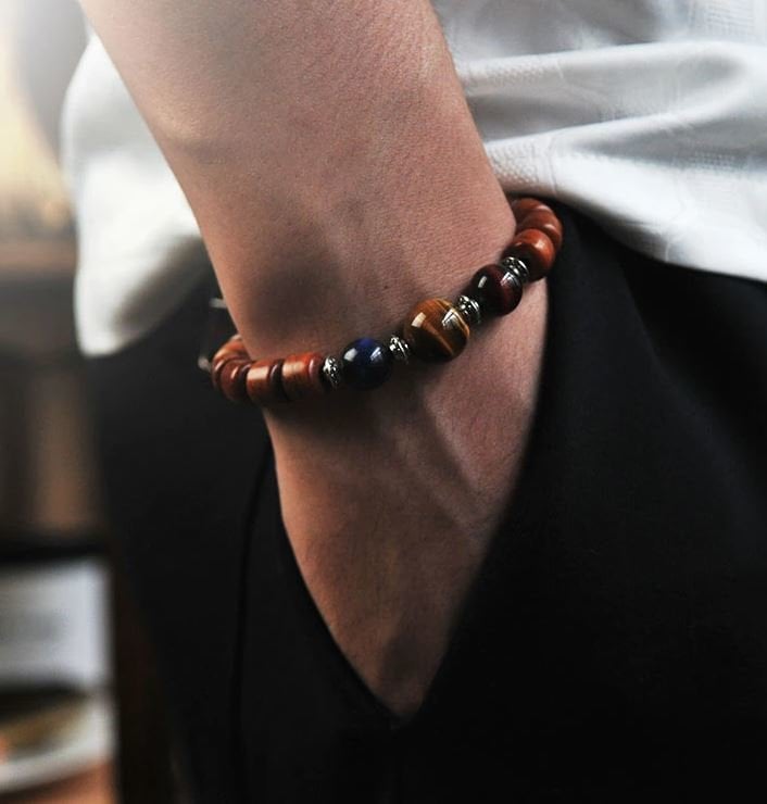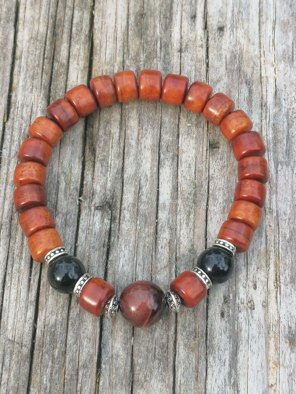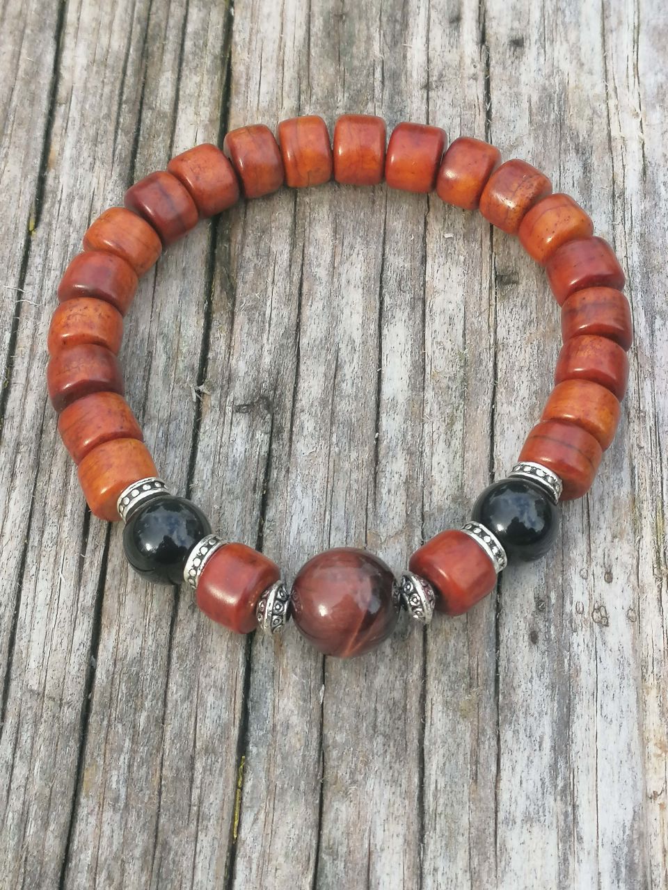 El Yapımı Yak Kemik Boncuk Kaplan Gözü Şans Bilekliği